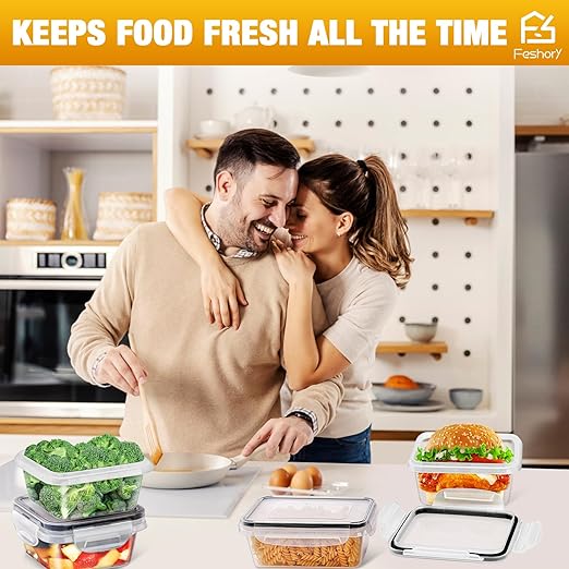 Airtight Food Storage Container Set, Fridge Pantry Organiser Ideal for Home & Kitchen Organisation - Meal Prep Containers & Lunch Box with 100% Leak Proof Lids