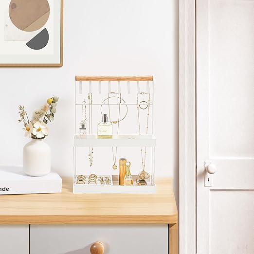 Jewelry Organizer Stand Holder, 4-Tier Cute Necklace Holder Stand Rack with 12 Hooks Place Rings Necklaces for Teen Girl Room Decor