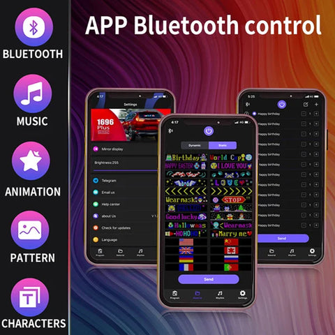 - Free-draw, free-text, upload your own images or GIFs, but here’s the kicker: Our App got an online library packed with tons of GIFs. Imagine cruising down the street with the coolest GIFs in the universe – your car’s gonna steal the spotlight like never before!