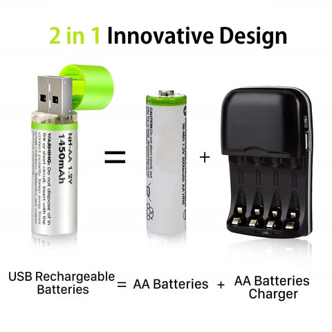 - 1 or 2 or 4 or 6 packs of USB Rechargeable AA Batteries